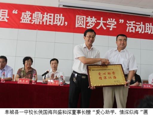 8月24日,“盛鼎相助、圓夢(mèng)大學(xué)”活動(dòng)捐助儀式在阜城縣一中禮堂舉行,市婦聯(lián)副主席鄭彥敏、縣委副書記呂繼武、縣人大副主任宋廣營(yíng)、縣政府副縣長(zhǎng)劉新榮、張榮霞、縣政協(xié)副主席魏蘭茹、河北盛鼎保溫材料有限公司董事長(zhǎng)盛和深、副總經(jīng)理王福良出席了儀式。參加儀式的還有縣婦聯(lián)、縣教體局和一中的負(fù)責(zé)人及教職員工。本次受助學(xué)生及其家長(zhǎng)也參加了捐助儀式。