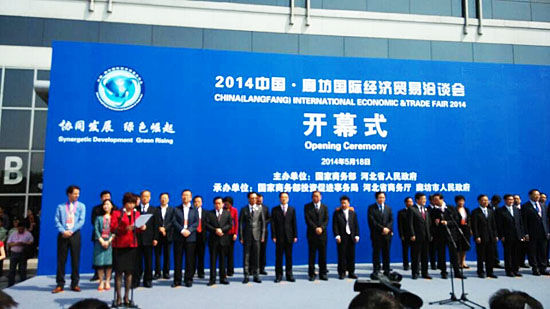2014中國•廊坊國際經(jīng)濟(jì)貿(mào)易洽談會(huì)于5月18日在河北廊坊啟幕。本屆洽談會(huì)以“協(xié)同發(fā)展、綠色崛起”為主題,抓住京津冀協(xié)同發(fā)展和環(huán)渤海加速發(fā)展的歷史性機(jī)遇,緊緊圍繞提升改造傳統(tǒng)優(yōu)勢(shì)產(chǎn)業(yè)、加快培育戰(zhàn)略性新興產(chǎn)業(yè)、大力拓展現(xiàn)代服務(wù)業(yè),突出在節(jié)能環(huán)保產(chǎn)業(yè)技術(shù)、裝備、產(chǎn)品和服務(wù)等方面的合作,注重產(chǎn)業(yè)對(duì)接、企業(yè)對(duì)接、項(xiàng)目對(duì)接和產(chǎn)銷銜接,著力打造更加區(qū)域化、更具品牌化、更趨國際化、更重市場(chǎng)化,具有較強(qiáng)吸引力、較大影響力的國際投資貿(mào)易促進(jìn)平臺(tái)。
