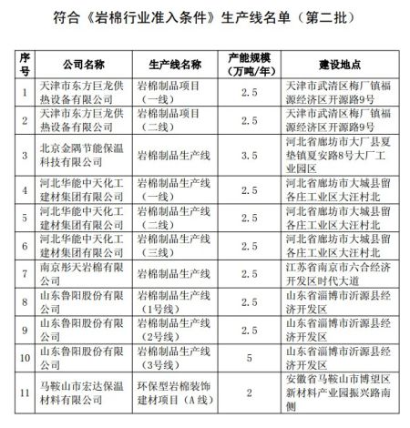 工信部網(wǎng)站25日消息,符合《巖棉行業(yè)準(zhǔn)入條件》生產(chǎn)線名單(第二批)公告,11條生產(chǎn)線入圍。